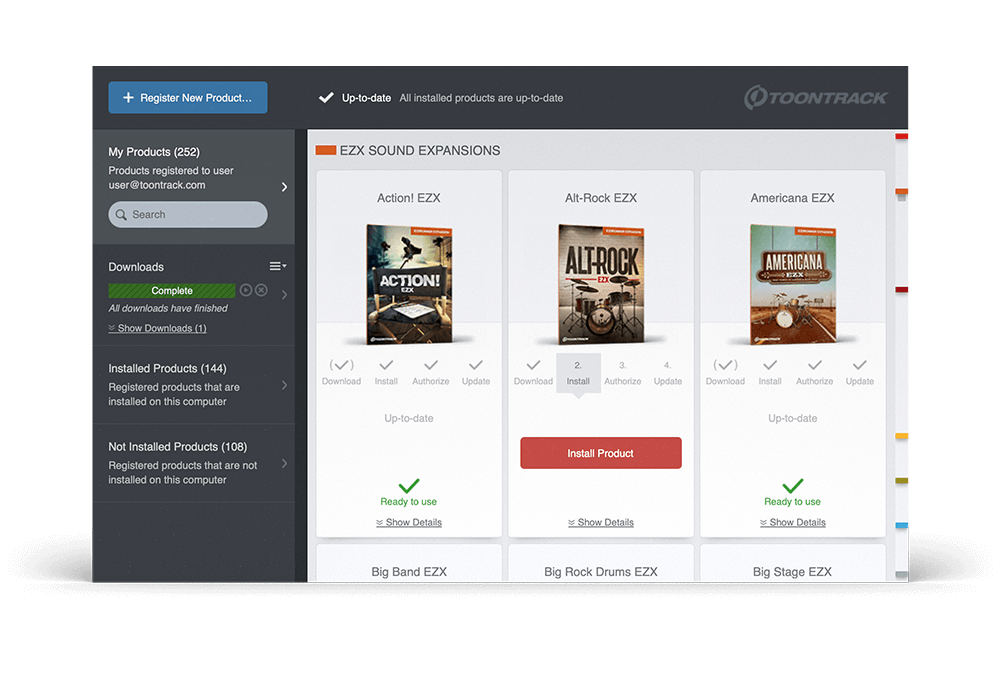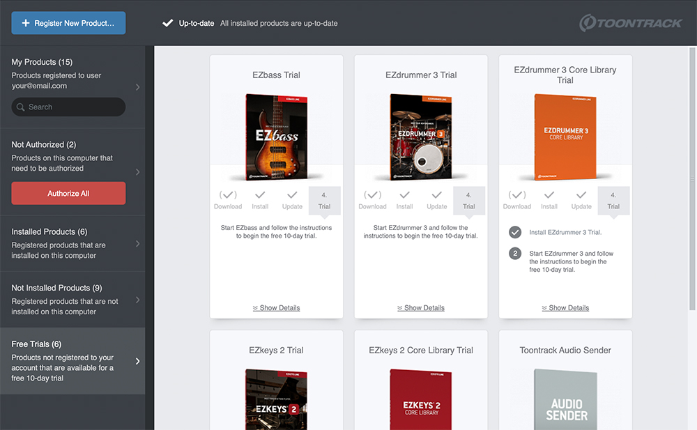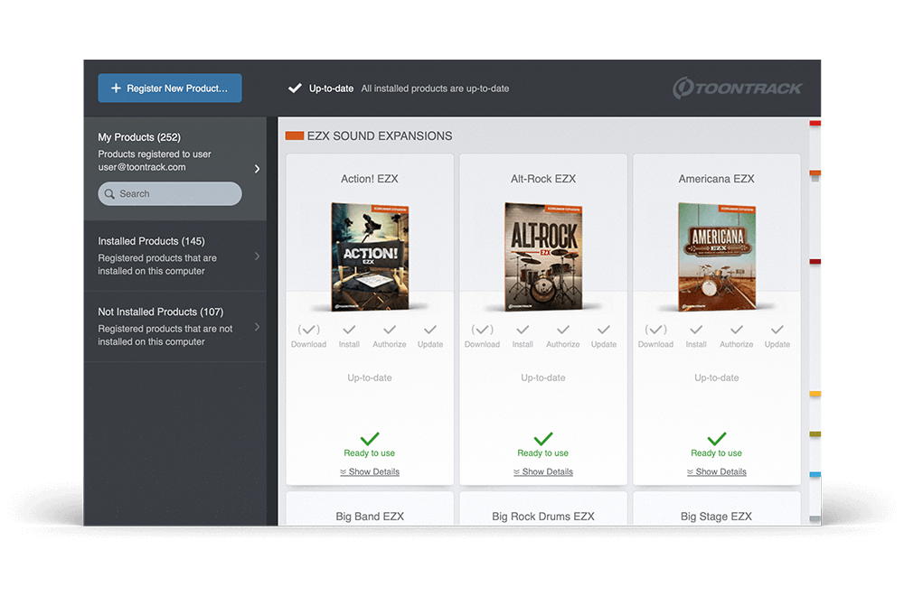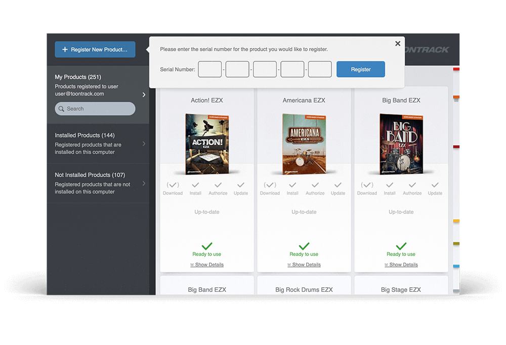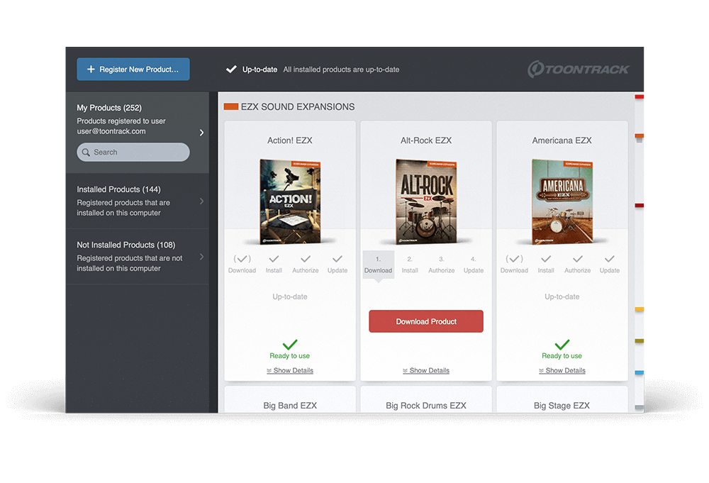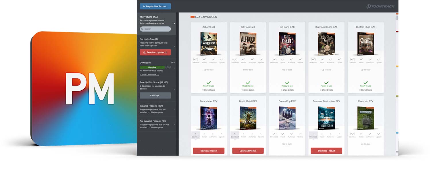 Log in to downloadThe Product Manager is a free application for all registered Toontrack users, available for download directly from each user’s account. With the Product Manager, you’ll be able to register, download, install, authorize and update your Toontrack gear in the simplest possible way – all in one application.