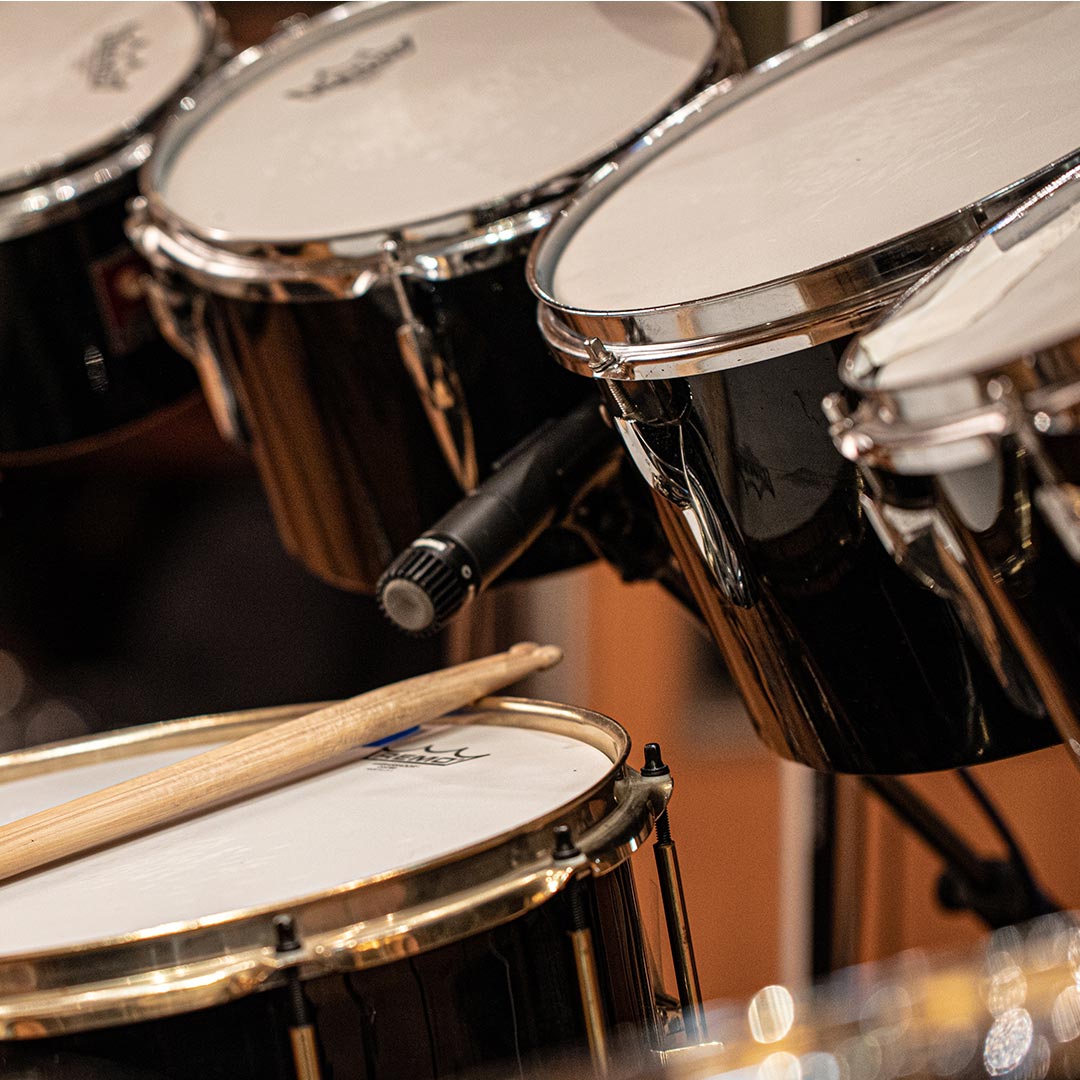 Sampled with snare wires on, using drumsticks and a felt kick drum beater.