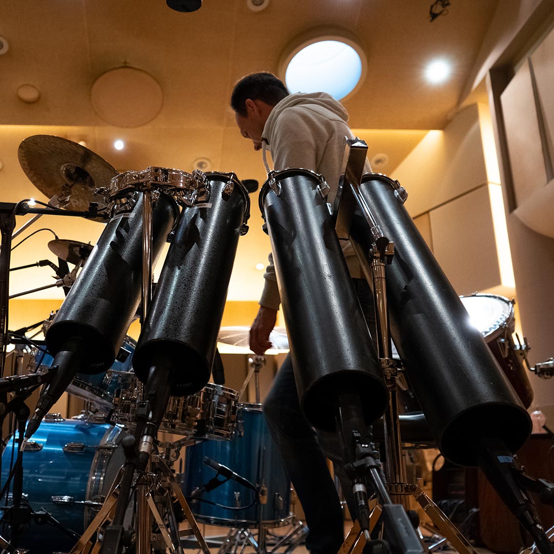 “It was a real stroke of luck that we got a hold of a ‘9000’ kit with concert toms, which is a rather rare thing – especially one with tom sizes ranging from six inches and up. The dry but oddly ambient tone these toms produce just scream the eighties. Combined with Hugh’s unique treatment of the kit, the finished result is really like throwing yourself back in time.” Norman Garschke