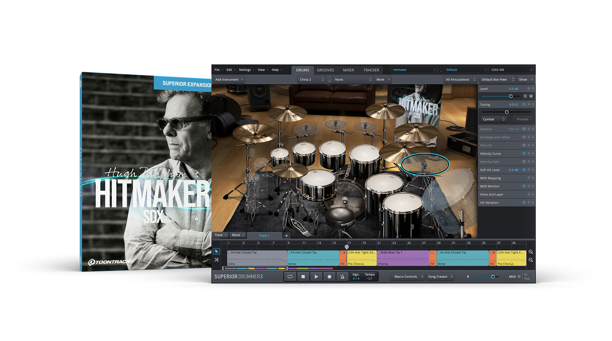 In this SDX, Hugh set out to create an all-encompassing source of acoustic and electronic drums inspired by not only the ’80s and ’90s eras, but also one designed to reflect some of the most known drummers and album mileposts in his body of work. All in all, six unique acoustic kits were sourced as well as a massive collection of classic vintage hardware drum machines – all captured in the breathtaking ambience of the immaculate sonic marvel that is the British Grove Studios in London, UK. To add an ever more organic and period-correct flavor, all drums and machines were recorded to tape before converted digitally. On top of that, the machines were amped through a PA system in the same ambience as the acoustic drums and captured using a similar microphone setup. This gives you an awe-inspiring canvas of acoustic and electronic sounds that you seamlessly can blend, mix, match and surgically modify using the broad set of onboard design tools available in Superior Drummer 3. Of course, should you want Hugh’s mixes right off the bat, there is a hefty amount of his custom presets included.