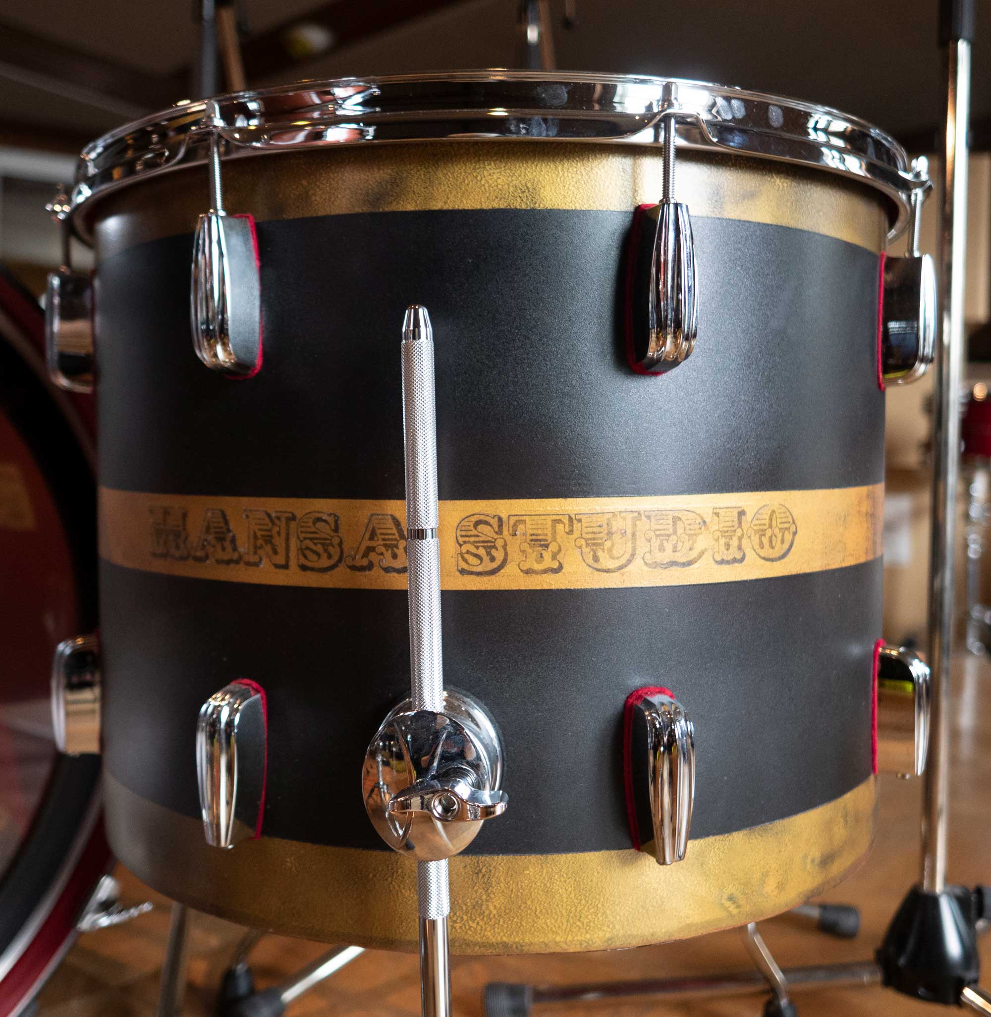 A massive collection of drums captured in the four different rooms of the Hansa Tonstudio.