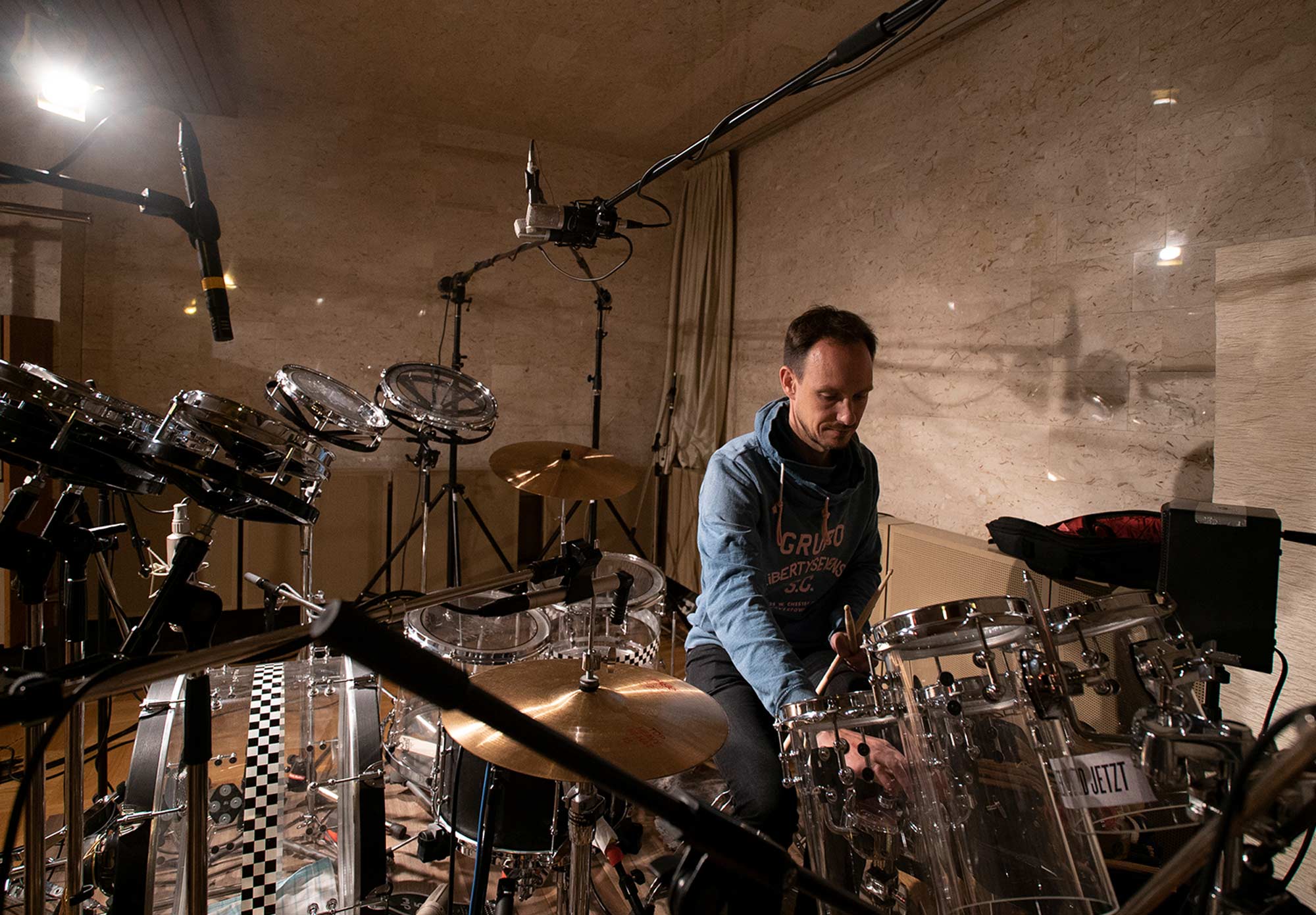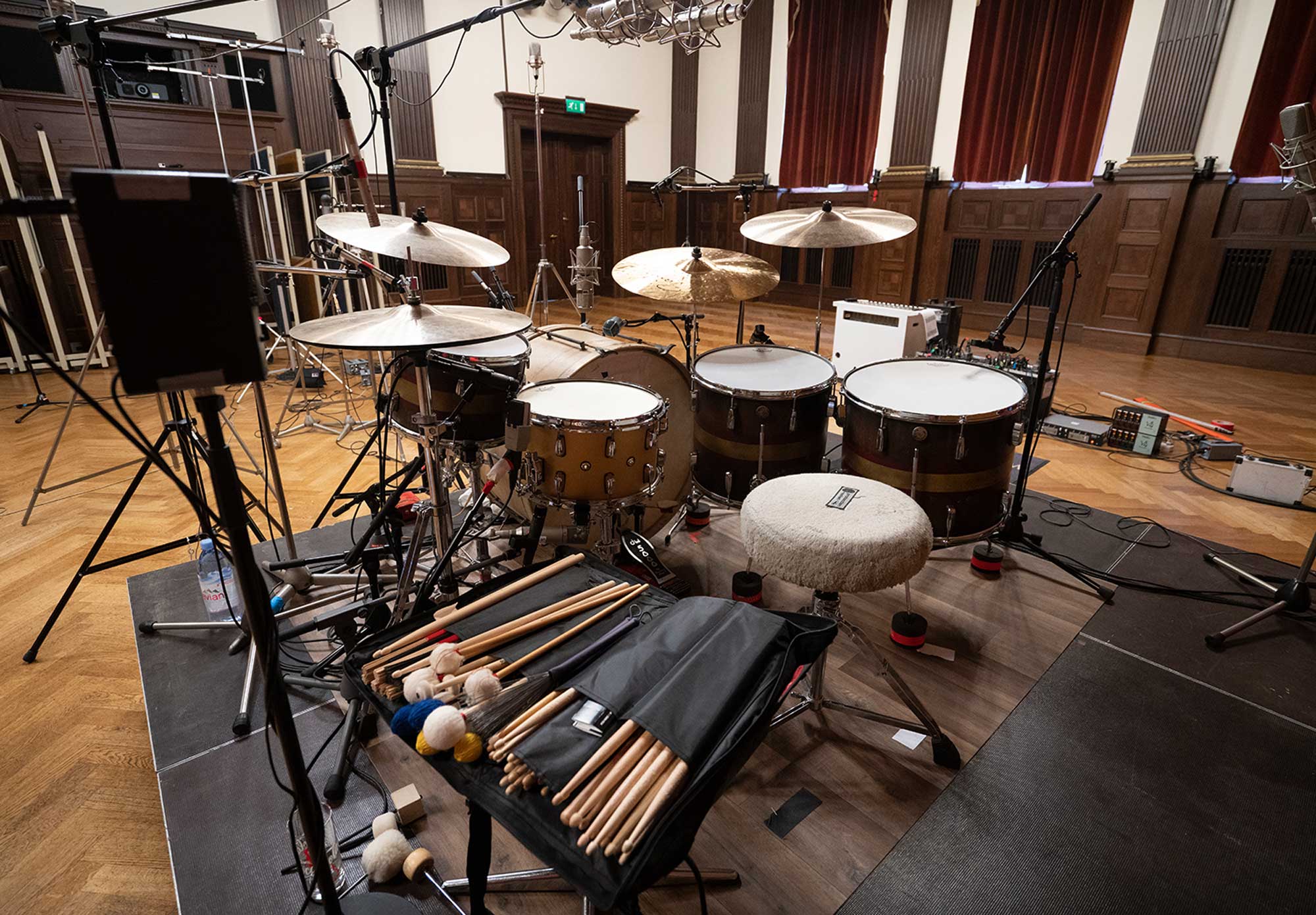 This is the same kit as the one that was recorded in the Marble Room. In the Meistersaal, though, it has an altogether different voice. It sounds huge! We also captured it with mallets, which again, introduces a completely new voice.