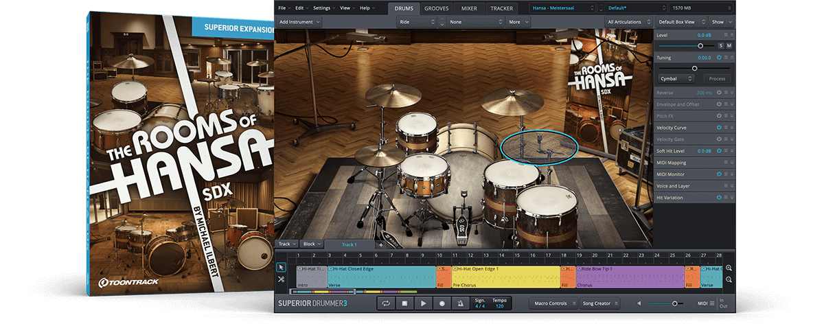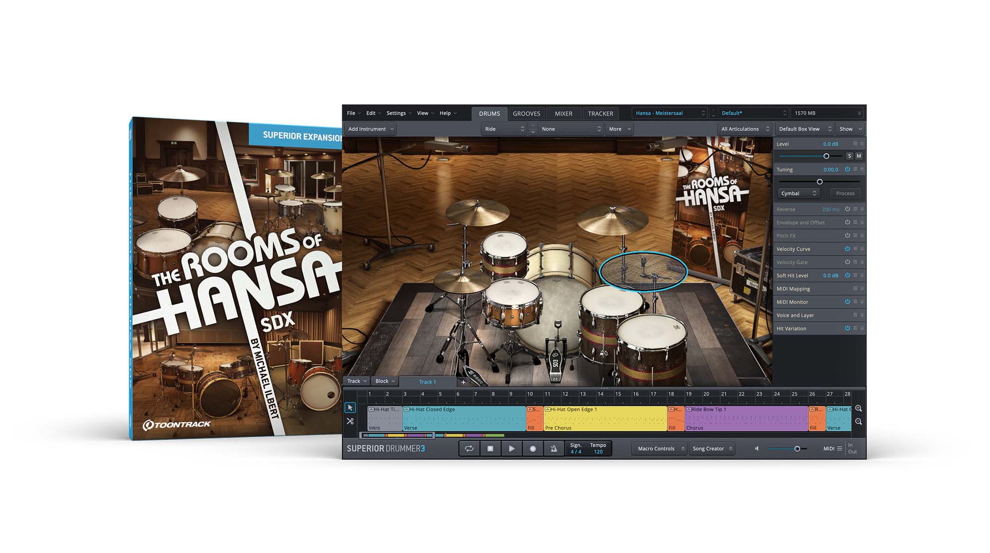 | ADD TO CARTThe Rooms of Hansa SDX features drums produced by Grammy Award-winning recording/mixing engineer Michael Ilbert in one of the most iconic studios currently in existence: the Hansa Tonstudio in Berlin, Germany. With a broad and handpicked collection of drums captured in all four available rooms on the studio premises, this SDX showcases an incredible width in regard to both tonal range and ambience.