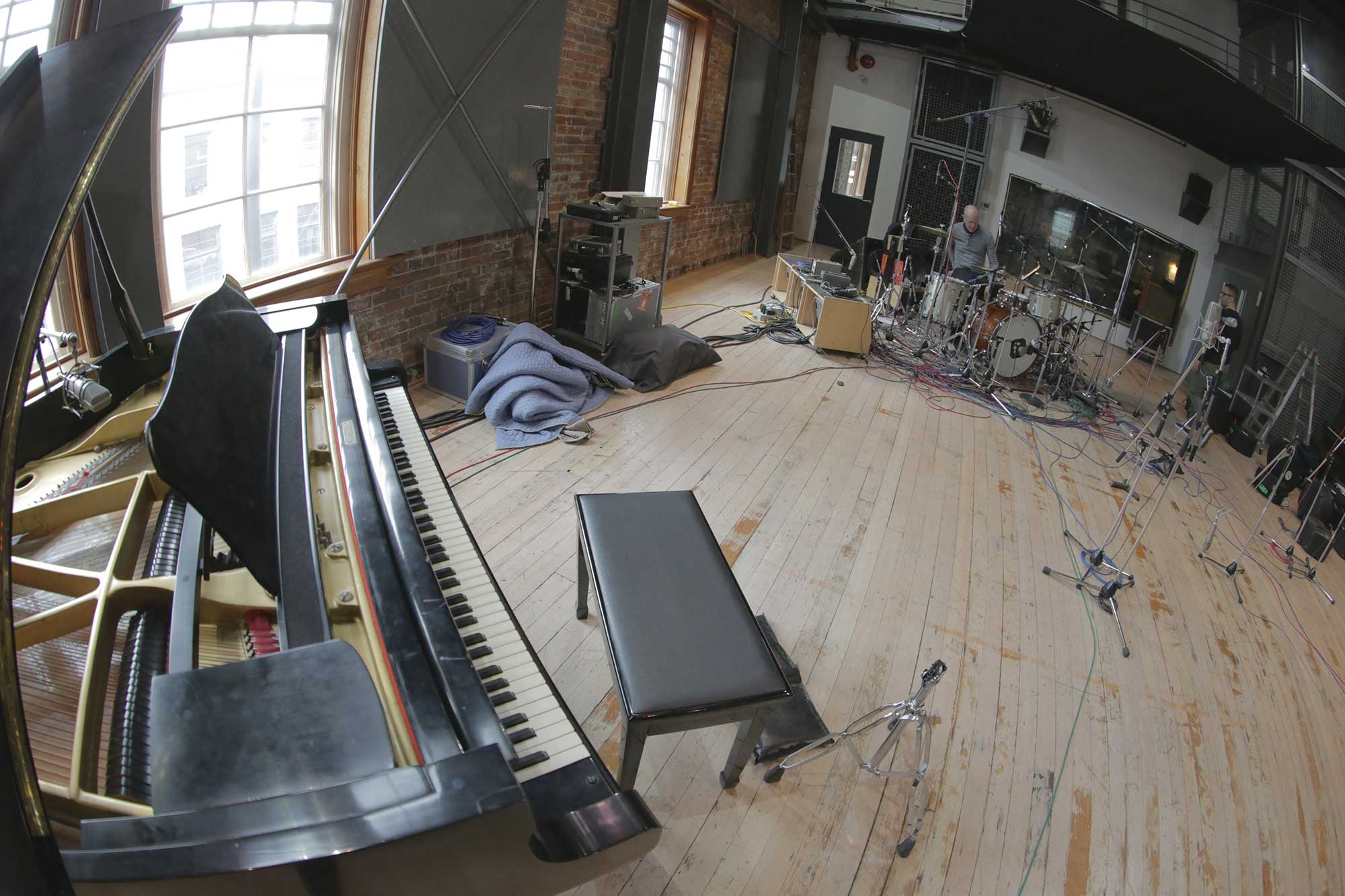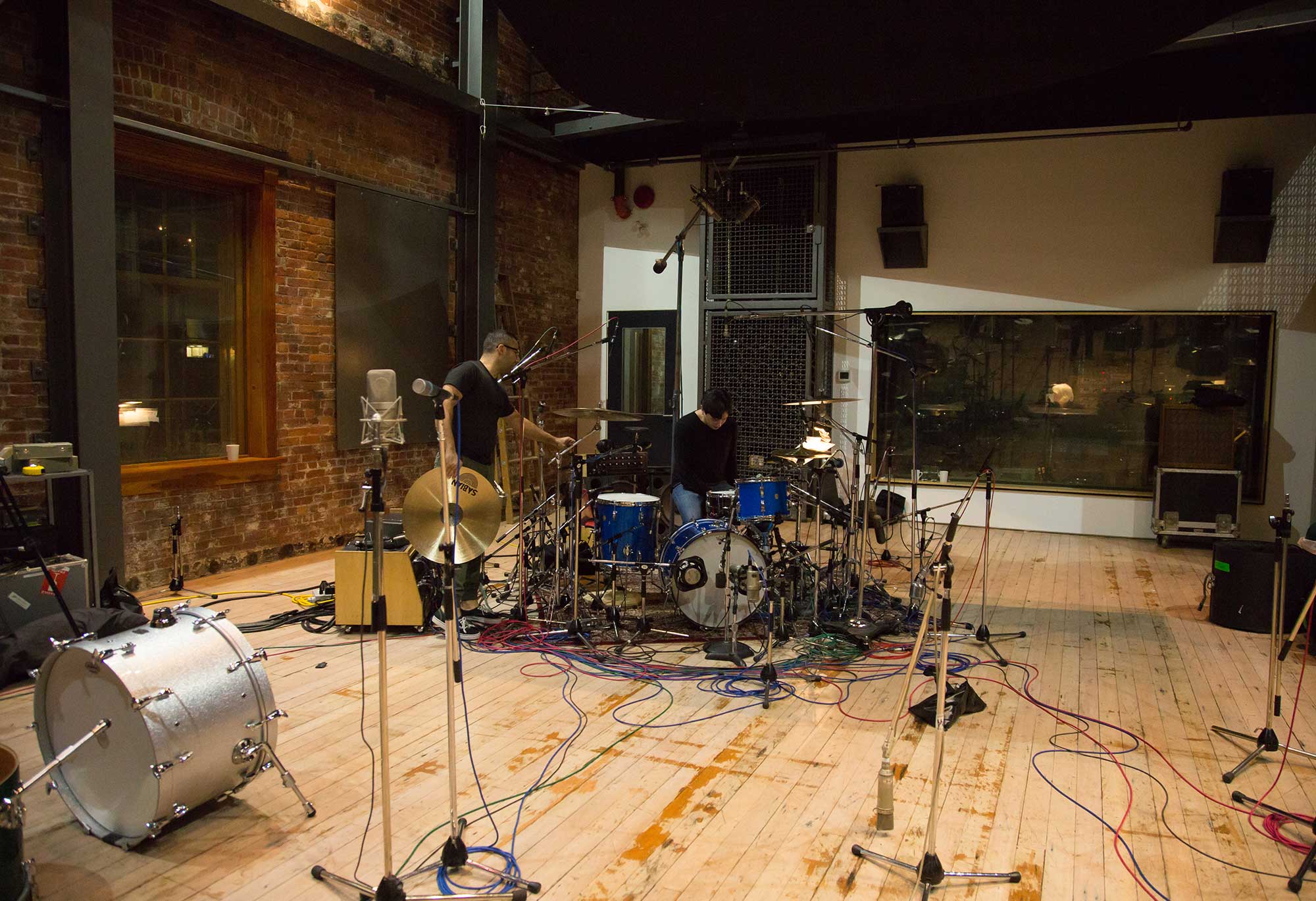 Completed in 1886 and originally meant to serve as a supply warehouse, the two-story brick structure on the southeast corner of Powell and Columbia in downtown Vancouver, BC, once known as the Oppenheimer Building today hosts one of the world’s best and most advanced recording studios. The main hall, with its hard brick walls and dense wooden floors, is a marvel of acoustic engineering and the perfect ambience for recording loud, reverberant but still controlled and subtly detailed drums.