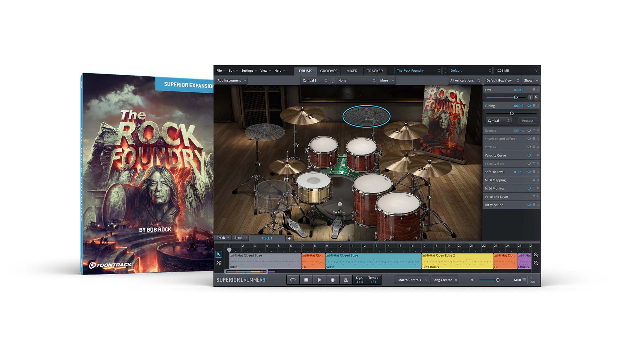 The Rock Foundry SDX features a staggering 65 GB of raw, unprocessed drum sounds recorded by arguably the most notable, influential and sought-after engineer/producer of our time: Bob Rock.