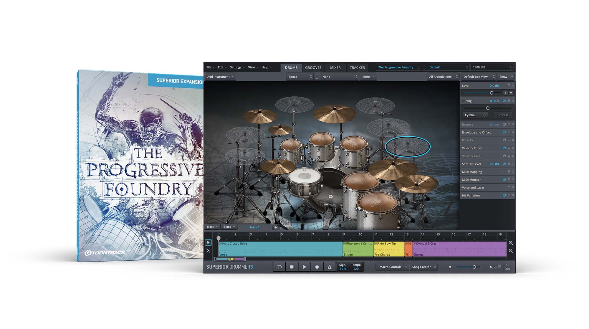 Five complete kits, a total of 17 snare drums, 31 cymbals and five hi-hats – all captured on 26 separate channels and spanning a staggering 63 gigabytes of raw, unprocessed sounds. Needless to say, The Progressive Foundry SDX continues the tradition of its sibling The Metal Foundry SDX and gives you one of the most profound expansions in the Superior Drummer Line.