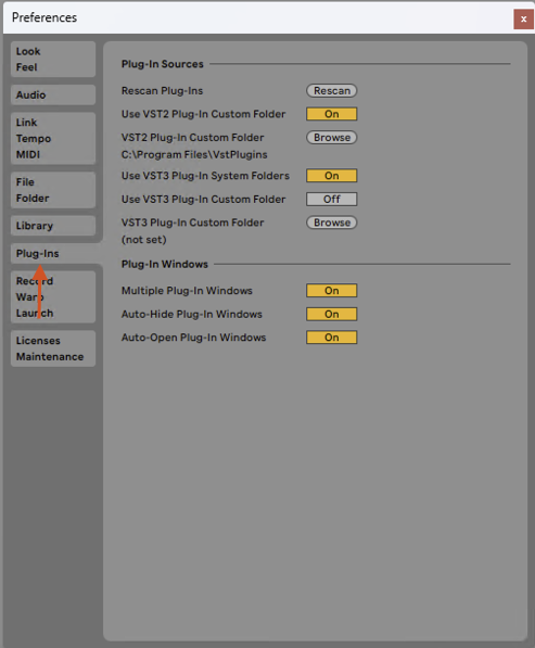 To set the path to the plug-in file in Ableton: