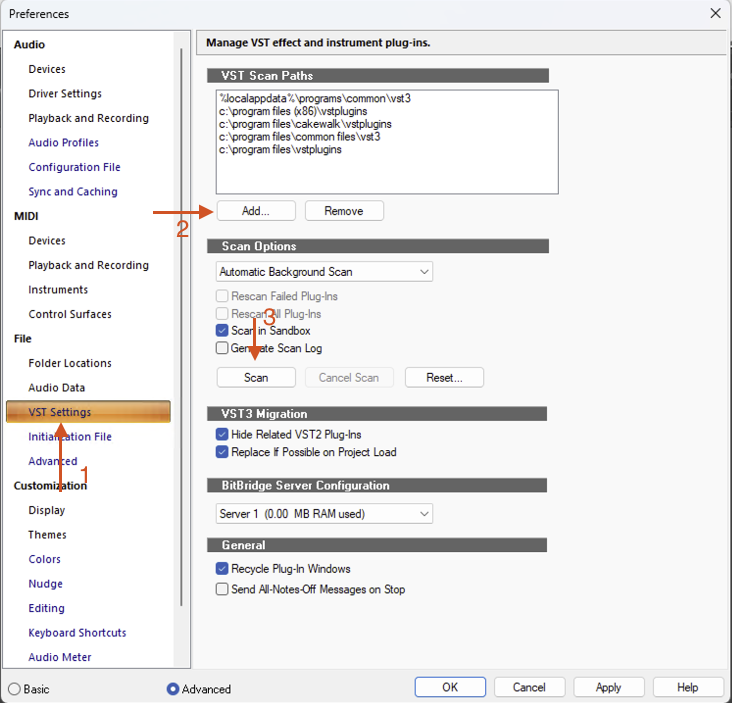 After installing a Toontrack plug-in you will need to let Cakewalk know where the new VST plug-in is installed. Depending on your operating system and the bitness of the plug-in, the location can be slightly different.