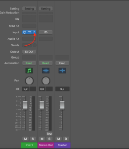 Select the track you want to add the plug-in to and make sure that the “Mixer” button located at the top left of Logic is activated: