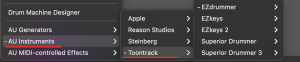 Go to AU Instrument > Toontrack to find your installed Toontrack plug-ins. Select your desired plug-in.