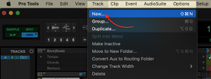 To add a new track for your virtual instrument, open the Track menu and select “New…”: