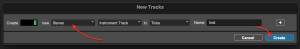 Select a new Stereo Instrument track and click “Create”: