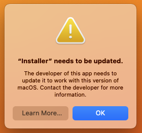 Some of our installers are 32-bit applications, and since macOS Catalina, 32-bit apps are not supported.