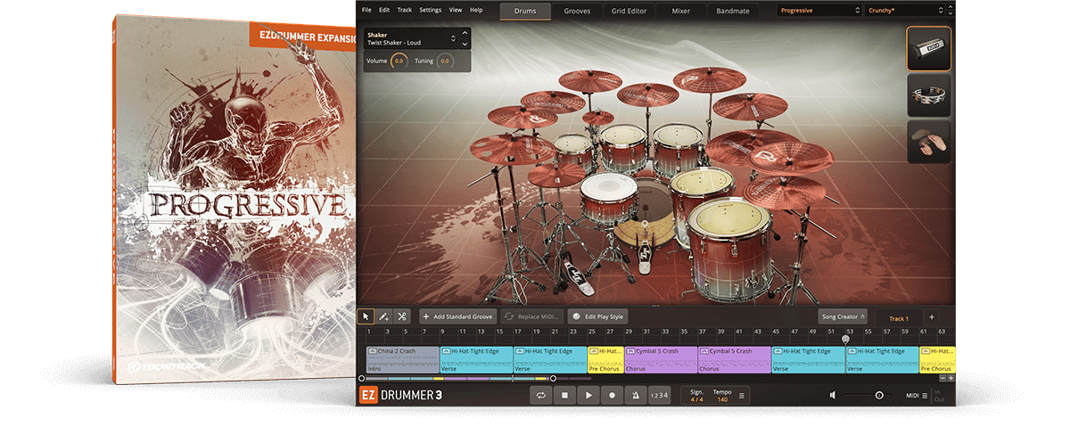 Together with the included presets, the Progressive EZX gives you an unparalleled palette of meticulously recorded, richly textured drum sounds tailored for metal or heavy rock. Start writing!
