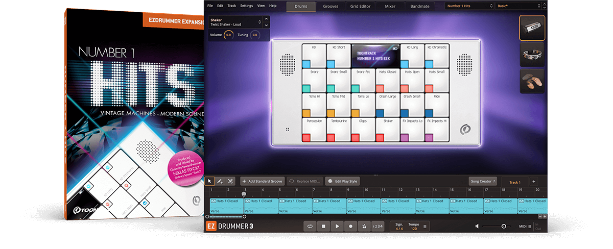 We ended up with Number 1 Hits, a one-stop shop for instant pop, dance, house and hip-hop drum production. It has all the timeless sounds heard in pretty much every modern production that tops the charts of today. In addition, it comes with a large collection of unique and custom designed acoustic sounds – all of which were run through Niklas Flyckt’s amazing signal chain of SSL, tube vintage compressors and hard-to-find outboard gear.