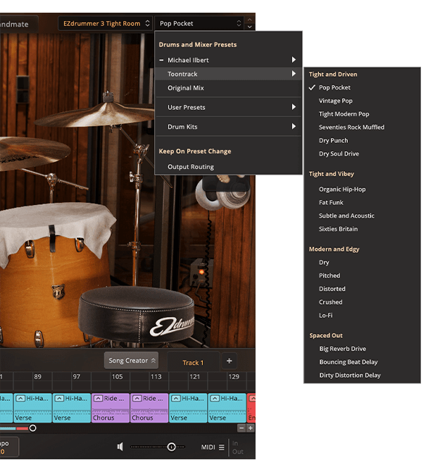 A solid groove is the heartbeat of any great song. EZdrummer 3 has a wide range of features designed to help you effortlessly get just the right groove going – for your track.