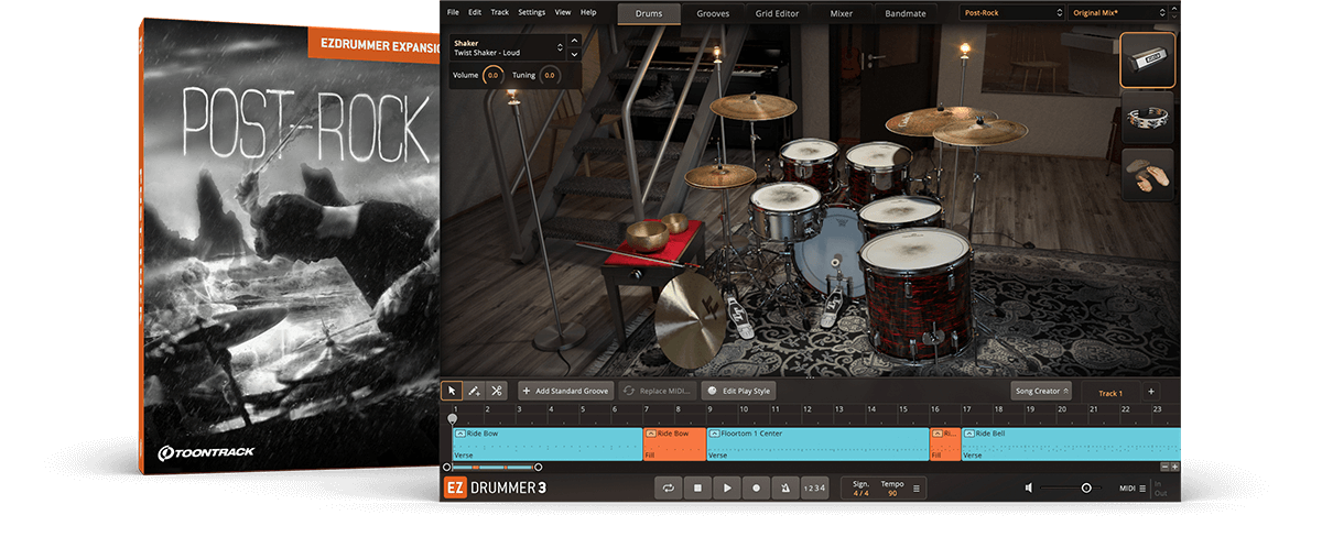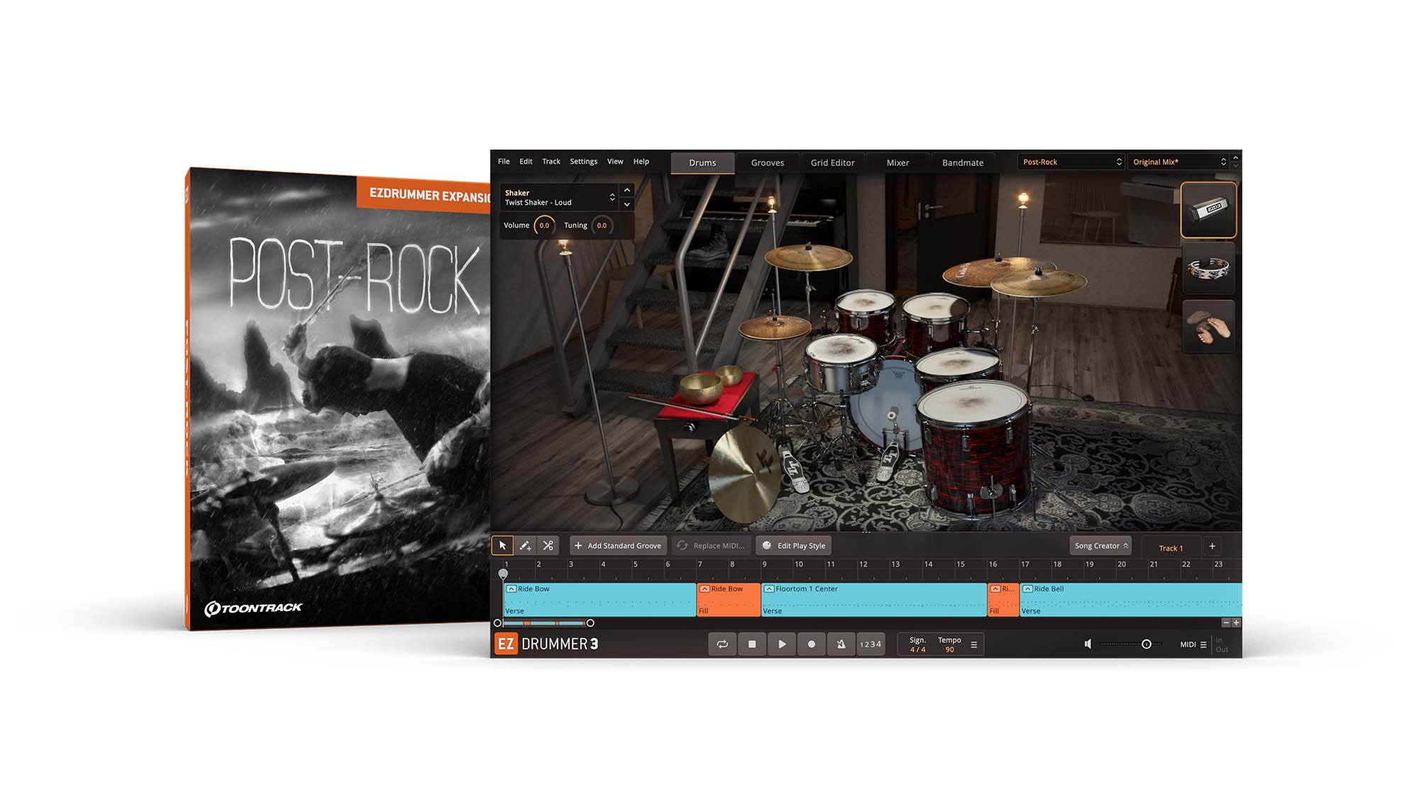 The Post-Rock EZX, combined with the powerful framework of EZdrummer 2, gives you an unparalleled creative palette to start painting your percussive soundscapes – from mellow to intense, from restrained to dramatic. Welcome to the ultimate collection of rich, deep and complexly textured drums that are allowed to breathe, seek and seep through to the forefront of your mix. Quality instruments, tailored for post-rock, but reaching way beyond any genre.