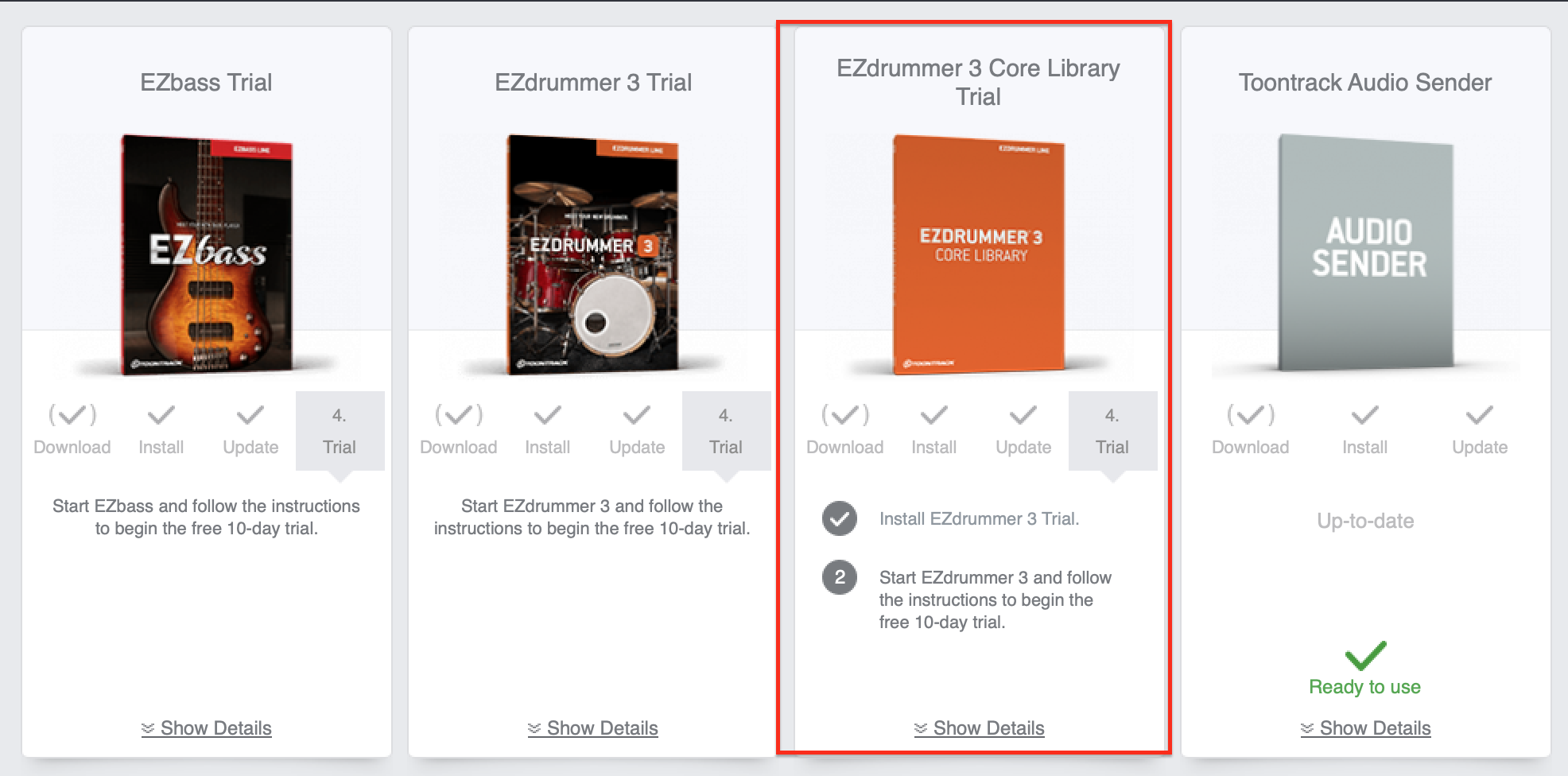 You can download the EZdrummer 3 Core Library Trial from the Product Manager application.
